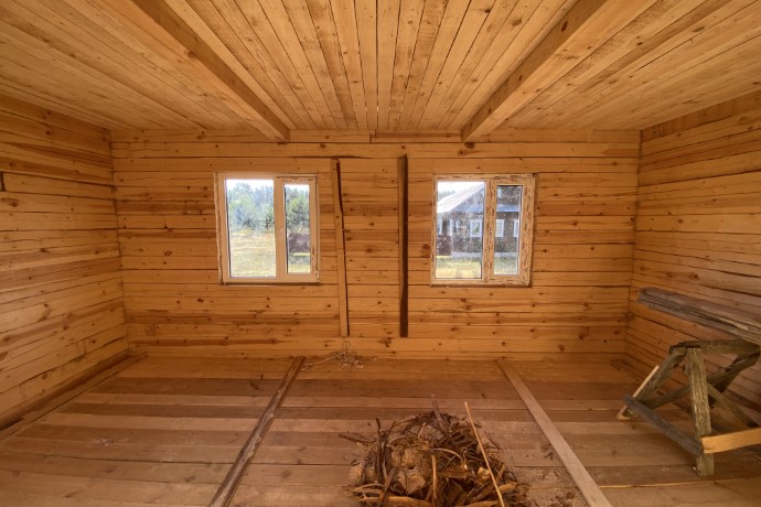 Установлены стеклопакеты, вставлена металлическая дверь, внутри сделаны черновые полы, черновой потолок. Фундамент ж/б ленточный. Участок 15 сот. на берегу реки Шалочь, выход к реке с участка - 25м (не топит - участок стоит высоко) На участок подведено электричество. Дорога от трассы до дома проходит в сосновых борах. Тихие, уютные места. Рыбалка, охота, грибы, ягоды - всего этого в изобилии! В 10км находится р. Молога и р. Чагодища.